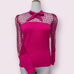 cafarena de rib delgado con gasa de corazones color fucsia